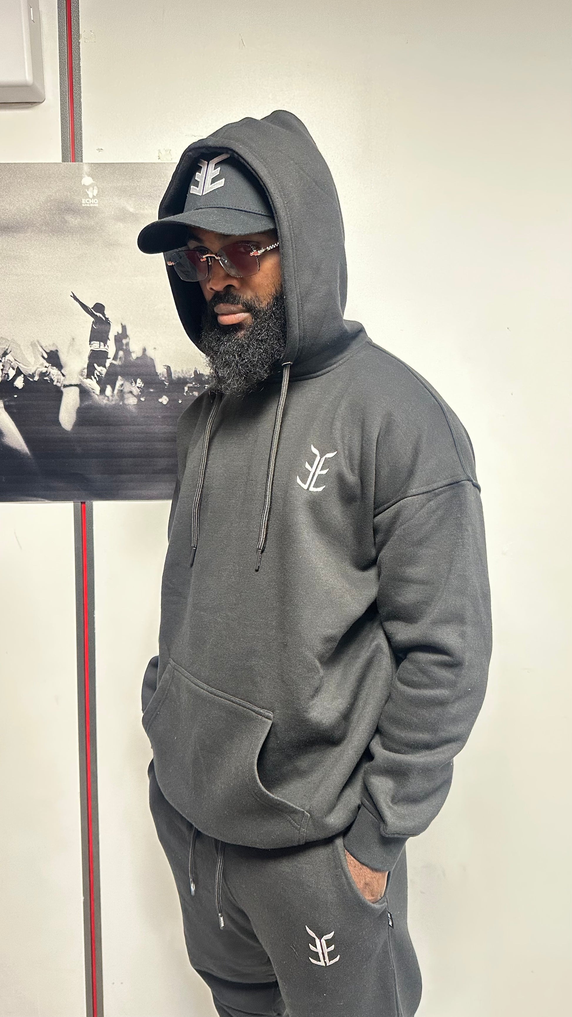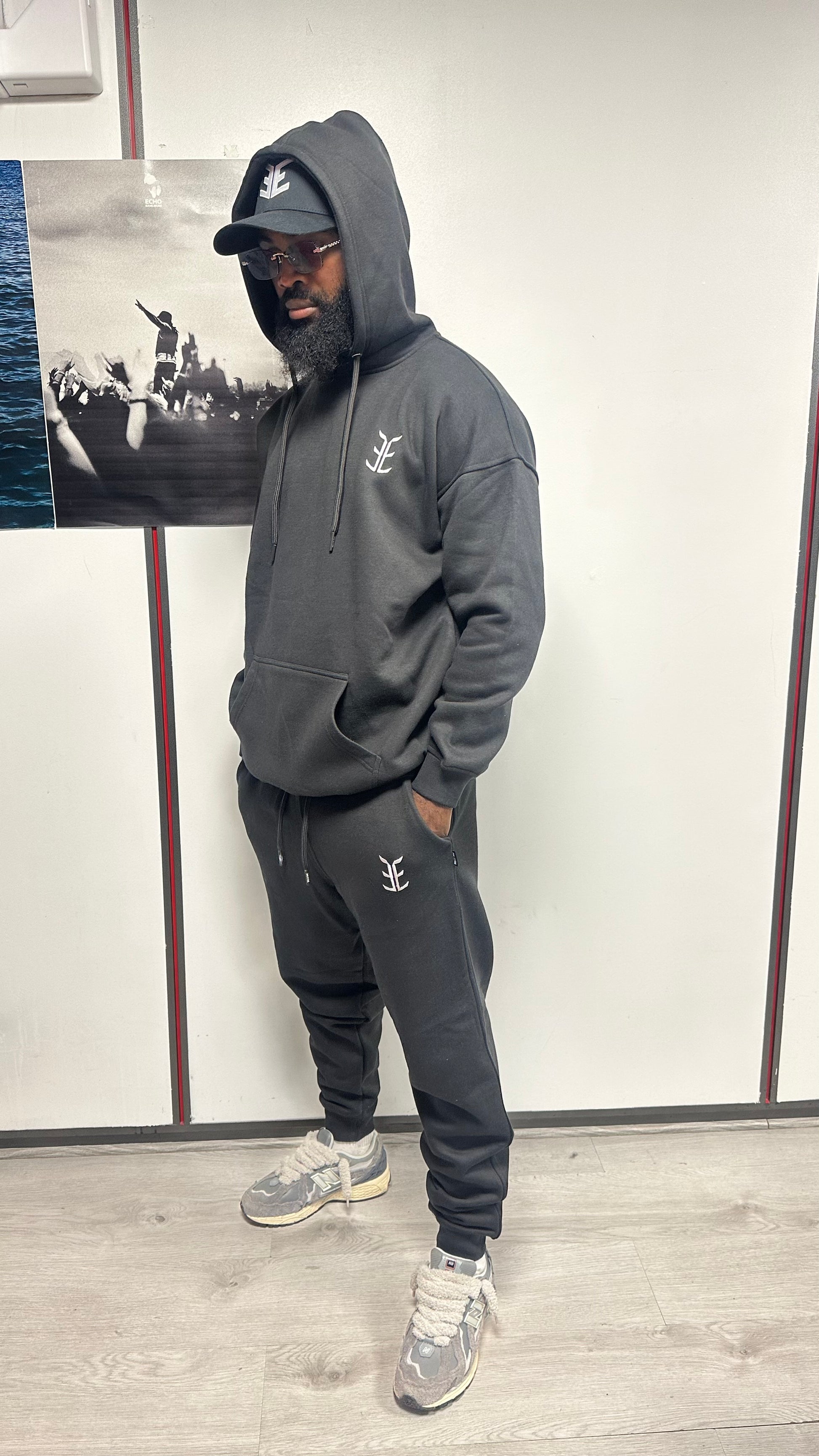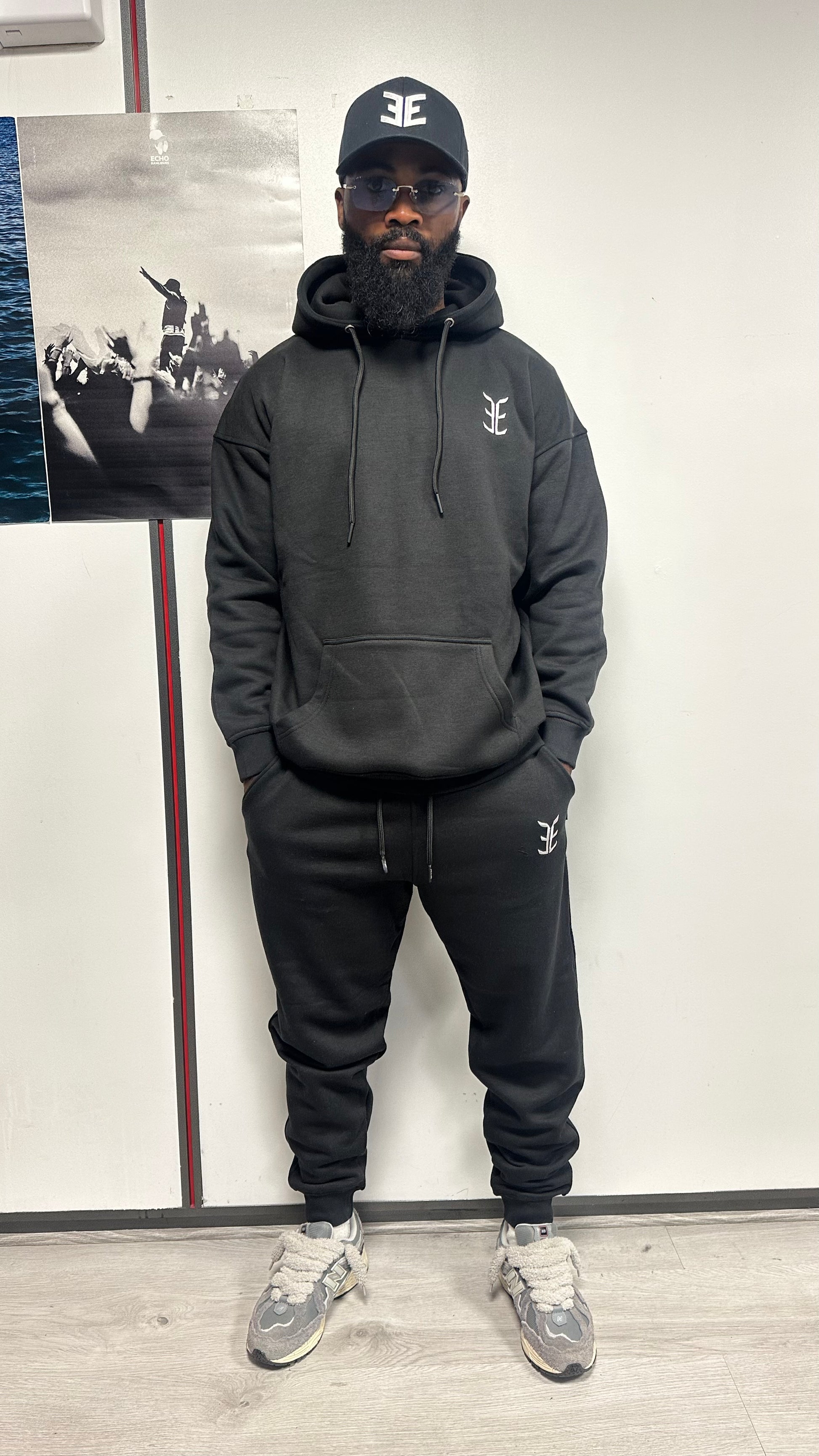Casual jogging suit in cotton blend fleece with a soft, brushed interior, consisting of a hoodie and jogger pants. Sweatshirt with lined hood, adjustable with drawstring, and kangaroo pocket on the front. Dropped armholes and long sleeves. Wide ribbing at the cuffs and hem. Jogger pants with smocked elastic and drawstring at the waist. Seam pockets and one pocket on the back. Dressed elastic at the bottom of the leg.