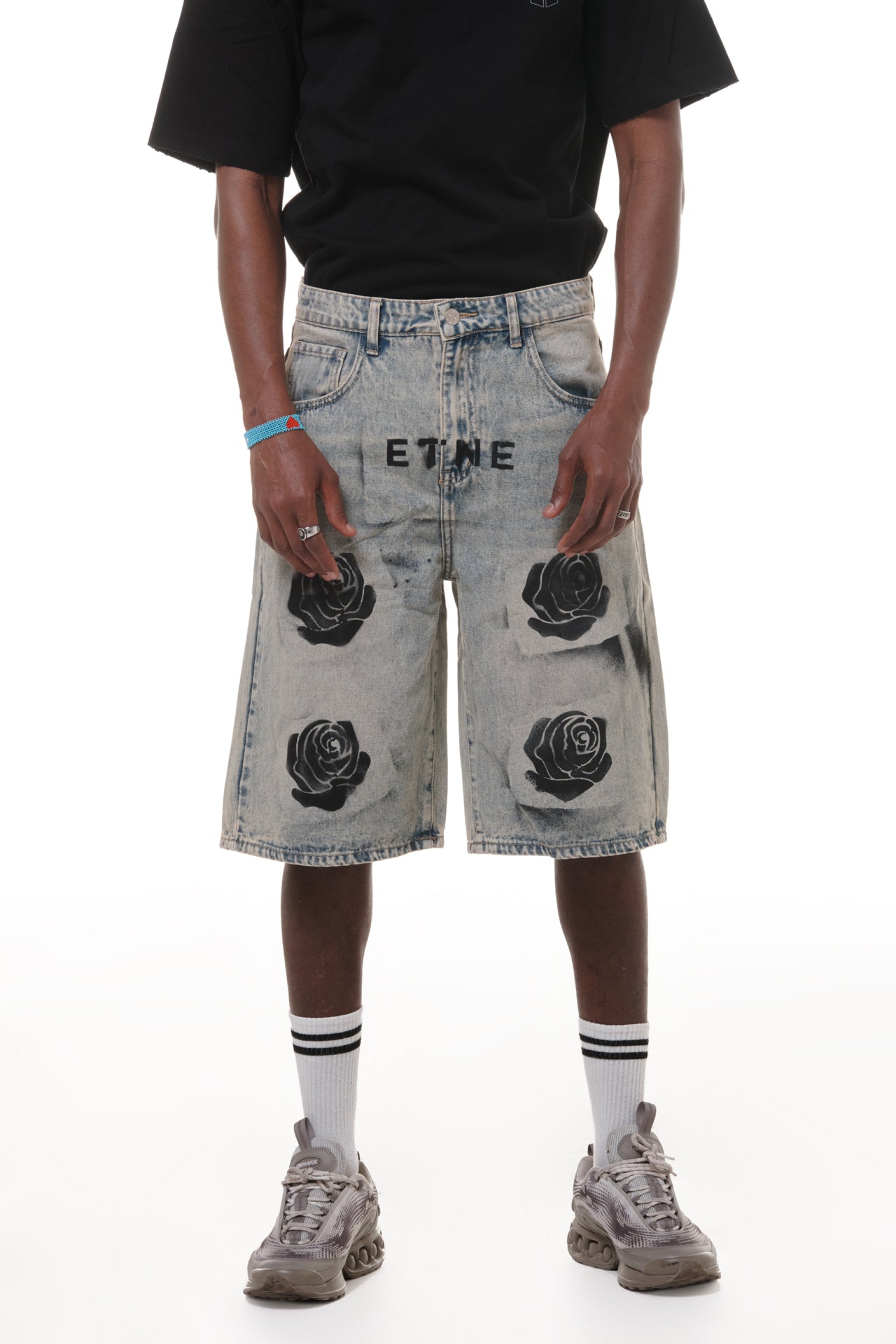 Ce bermuda en jean gris, agrémenté de touches de peinture artistique, allie robustesse et style contemporain. Conçu pour offrir confort et durabilité, il apporte une touche unique à votre garde-robe estivale grâce à son design original et sa finition soignée. Idéal pour ceux qui recherchent un vêtement à la fois pratique et tendance.